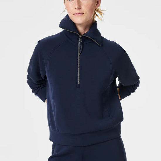 The Airessentials Half Zip offers an oversized fit designed for easy layering and all-day comfort. Its light-as-air, luxuriously soft spacer fabric ensures optimal airflow and circulation, keeping you comfortable without overheating. The at-the-hip length, falling between mid and high hip, provides versatile coverage. With 4-way stretch, this piece moves with you, making it ideal for any activity or casual wear. Designed for effortless wear, it combines functionality with a relaxed style.