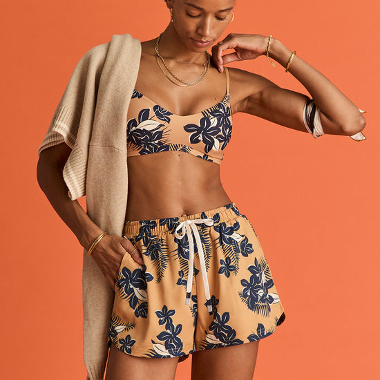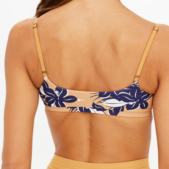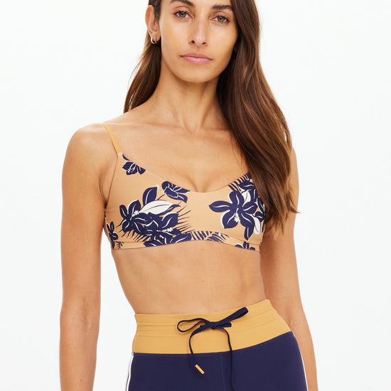 Experience light, playful support with the Aruba Ballet Bra. Featuring a low-coverage design in a vibrant Aruba floral print, it offers soft comfort with breathable, moisture-wicking fabric that dries quickly. Adjustable elastic straps ensure a perfect fit, while the recycled, peached material feels extra soft against your skin. A subtle printed arrow logo at the back adds a fun touch to your activewear. Perfect for those who want style and ease in one sweet package.