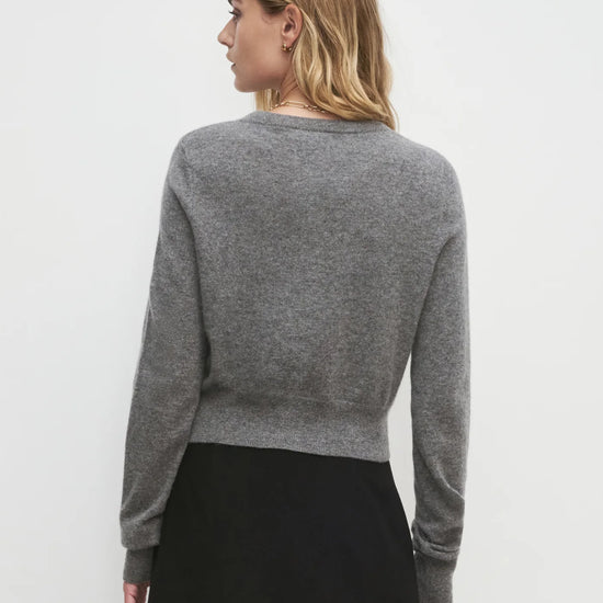 The Cropped Rebecca Cardigan is a bestselling essential, crafted from luxuriously soft cashmere in a flattering cropped silhouette. Its versatile length and refined fit make it the perfect layering piece—wear it buttoned over a cami, draped across your shoulders, or as a standalone statement. The charcoal grey with contrasting red buttons adds understated sophistication to any wardrobe. Pair it with The Rebecca Cami for a coordinated set, or style it with your favorite pieces for effortless elegance.