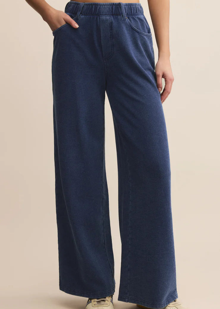 Experience comfort and style with the Entourage Knit Denim Pant, expertly designed in a soft knit denim French terry blend for a naturally worn-in feel. Featuring a high-rise waist and full-length wide legs, this pant pairs seamlessly with sneakers or heeled boots. The elastic waistband and patch pockets enhance ease of wear and functionality, while the mineral wash adds subtle character. Perfect for everyday wear, it offers a modern update on a classic silhouette with enduring quality. Machine wash cold on a gentle cycle and hang to dry for lasting care.