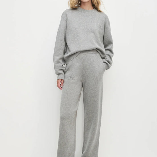 Crafted from a luxurious cashmere-knit blend, the Fatigue Sisters Wide Leg Pant delivers effortless sophistication with everyday comfort. Featuring reinforced waistband and cuff ribbing for a refined fit, this piece showcases an embossed Favorite Daughter logo and contemporary silhouette. The plush, ultra-soft construction makes it an ideal choice for those seeking elevated loungewear that transitions seamlessly from home to street. A versatile essential that combines tactile luxury with modern design sensibility.