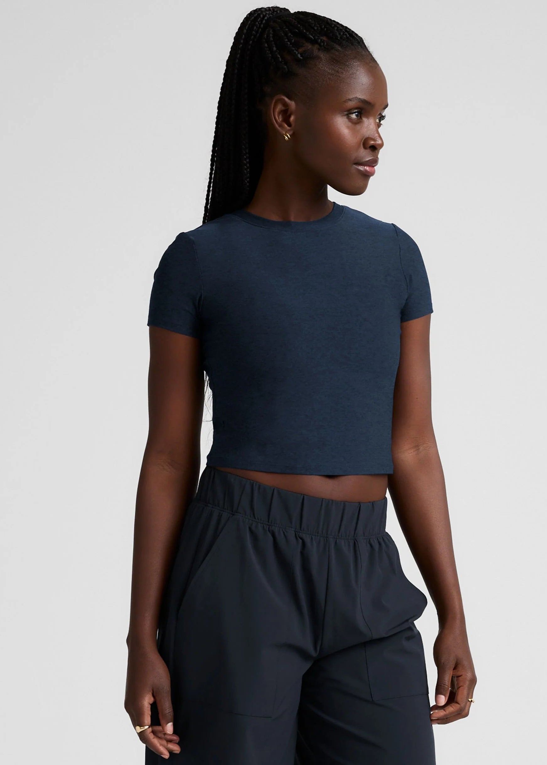 Bring back the 90’s vibe with our Featherweight Cropped Tee—your new go-to for effortless style! Crafted from ultra-light, supersoft Featherweight Spacedye fabric, it hugs your shape with a flattering fitted cut and a cheeky cropped length. The classic crew neckline and short sleeves make it perfect for layering or rocking solo, all year round. Pair it with your fave leggings or trousers and get ready to slay every mood, every season. Easy, breezy, and irresistibly playful!