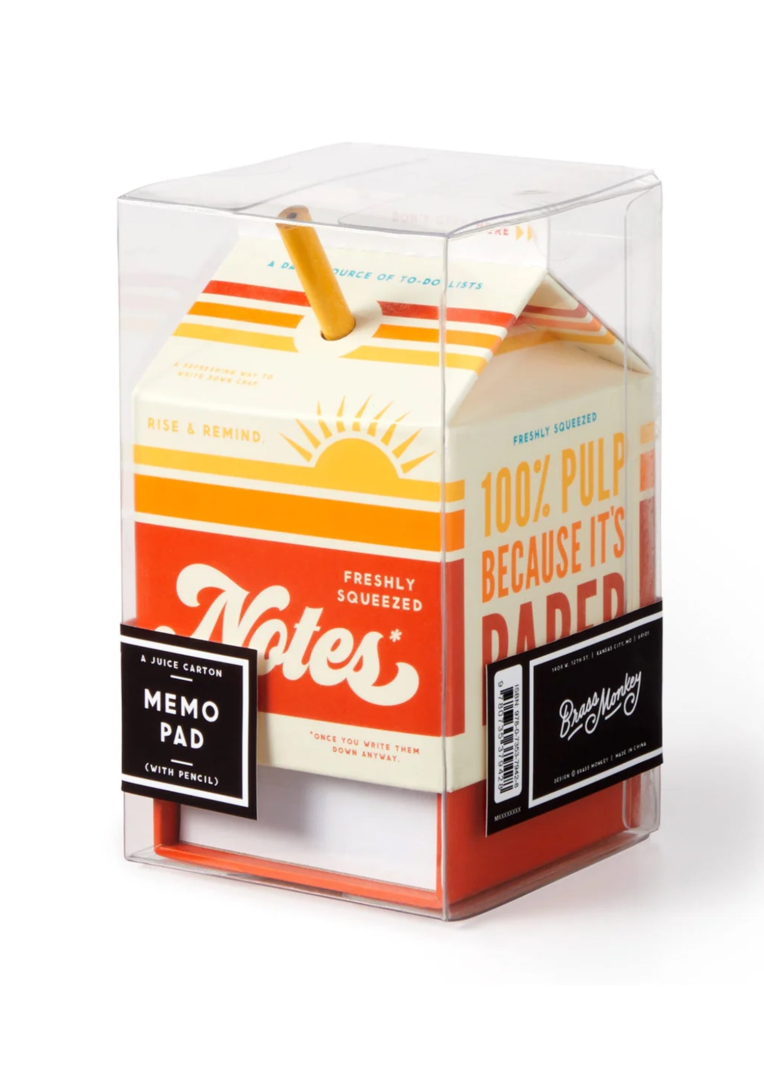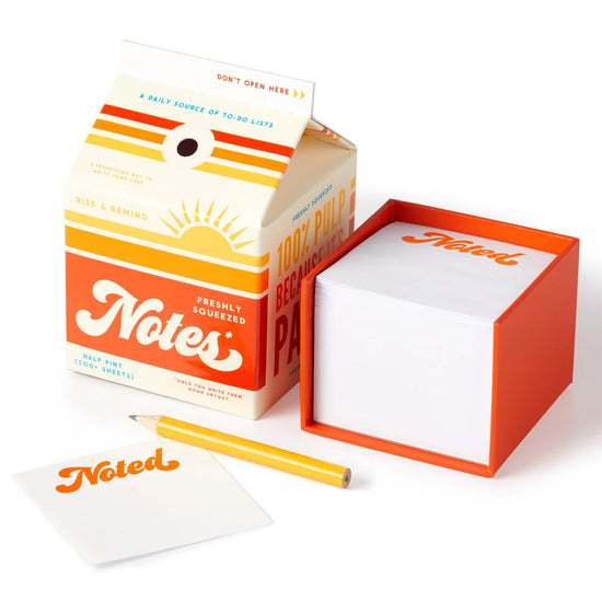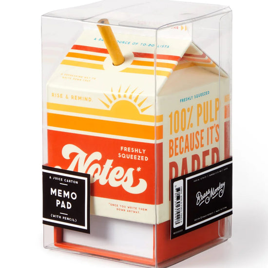 Sure it looks like an orange juice carton, but lift off the top, and you’ll find a block of 500+ tear-off sheets of paper – making this note set by Brass Monkey perfect for reminders, doodles, or that to-do list that’s bordering on expired.