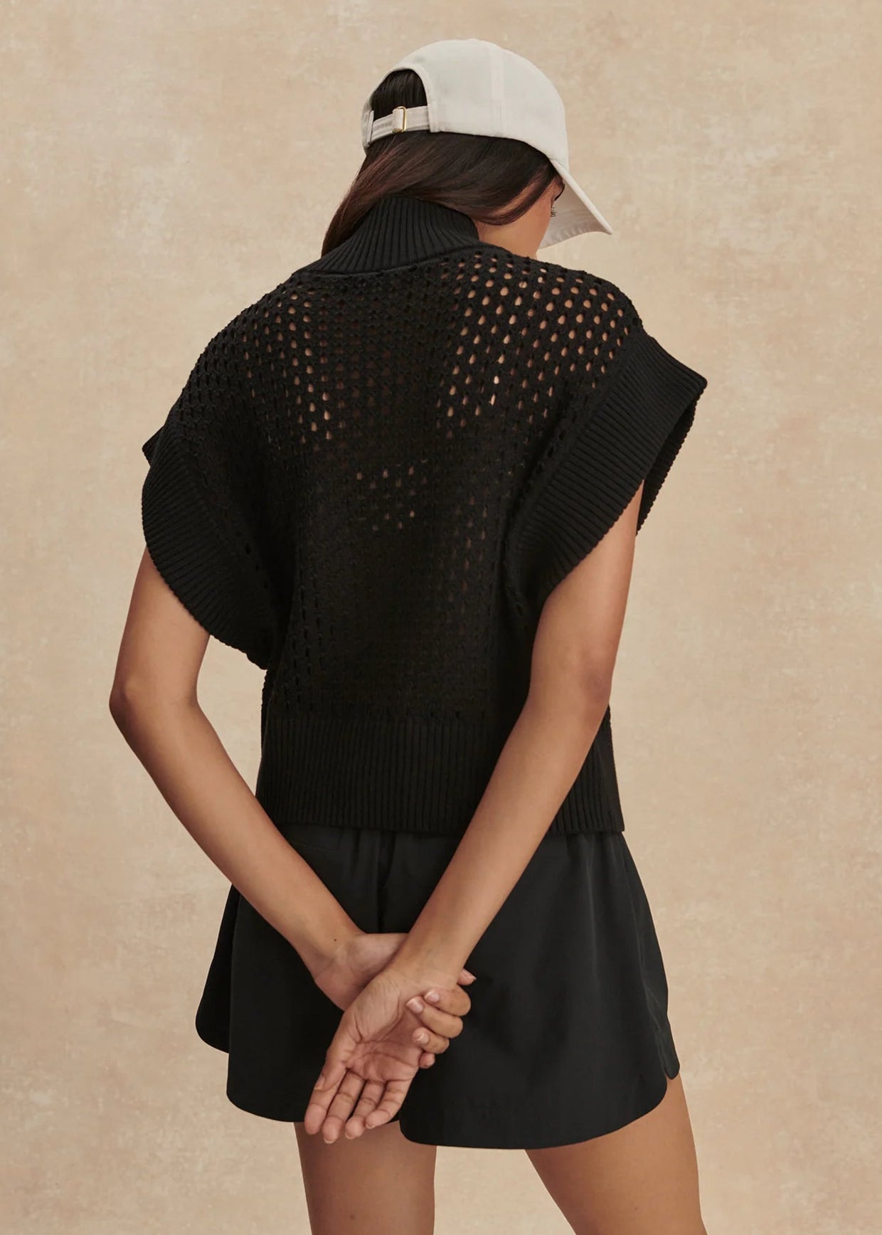 The Gaines boasts an oversized half-zip design with chic cap sleeves. Made in our textured Pineapple Knit, wear it with a bralette on warmer days and easily tuck it into shorts or pants thanks to the ribbed hem.
