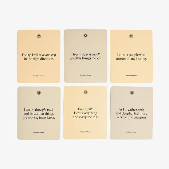 Mindful Affirmations Display Cards from Intelligent Change offer a curated collection of uplifting statements designed to reshape your inner dialogue and cultivate a more positive mindset. Each card features carefully chosen affirmations spanning self-love, gratitude, abundance, and resilience—topics that resonate across life's varied experiences. The minimalist typography design combines aesthetic appeal with clarity, making these cards both visually striking and effortless to use. Whether you're seeking a meaningful gift for someone's personal growth journey or investing in your own daily practice, this set serves as a tangible reminder to challenge limiting beliefs and reinforce empowering thoughts. Perfect for anyone committed to mindfulness and intentional self-development.