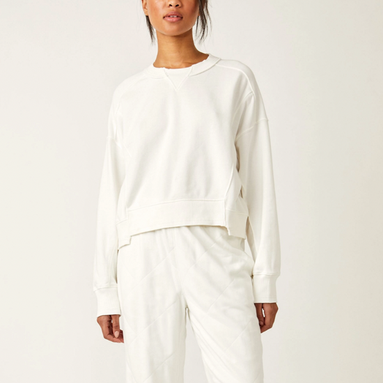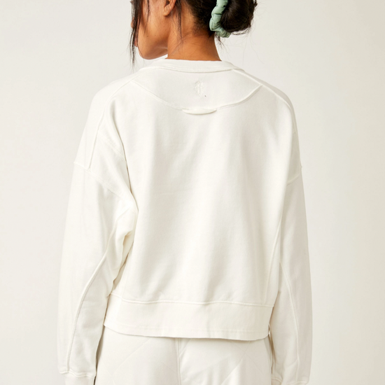 So essential and made to wear everywhere, this classic sweatshirt is featured in a slightly cropped length and boxy fit with seam detailing throughout.