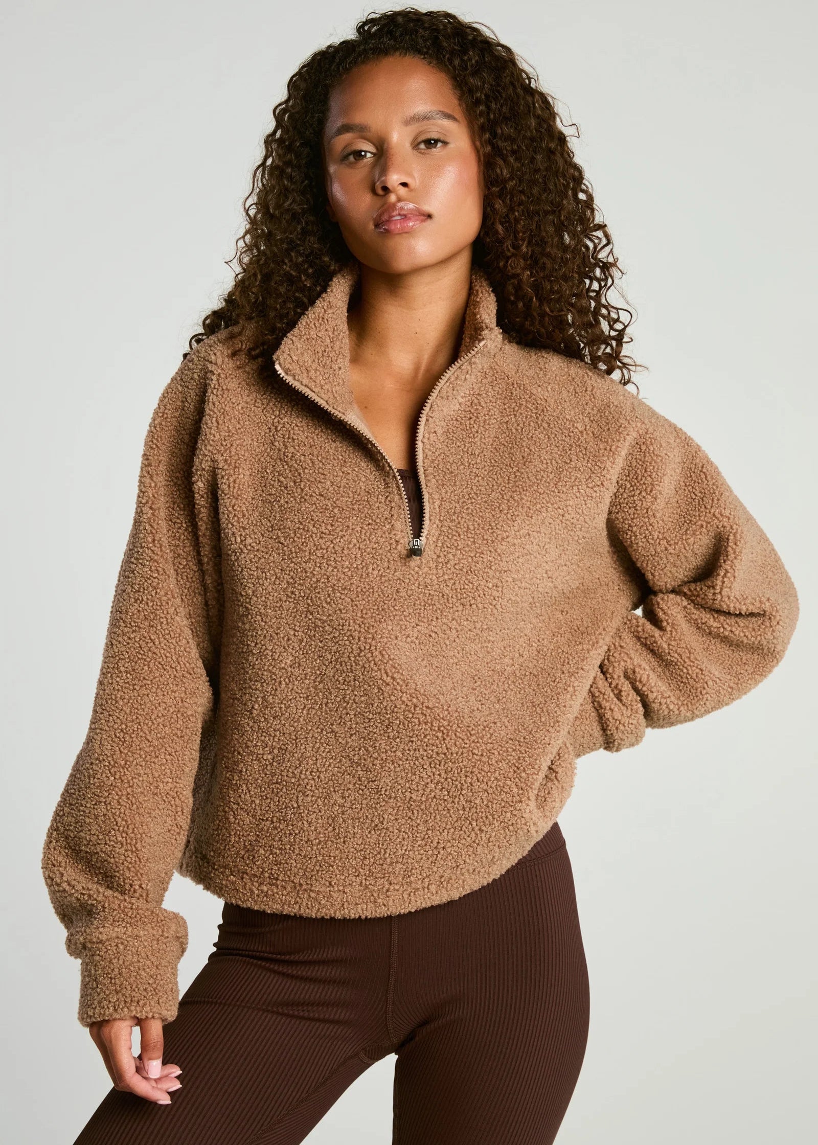 The Lucia Half Zip combines preppy style with cozy comfort, making it an essential layer in your active wardrobe. Crafted from plush teddy fabric, this long-sleeve top features a quarter zip with collar for adjustable coverage. At 21.5” in length, it offers a flattering fit while moisture-wicking technology ensures you stay dry during activity. Made from 100% polyester with a stretch-enhanced lining, it’s easy to care for—just machine wash cold and lay flat to dry—delivering both performance and effortless style.