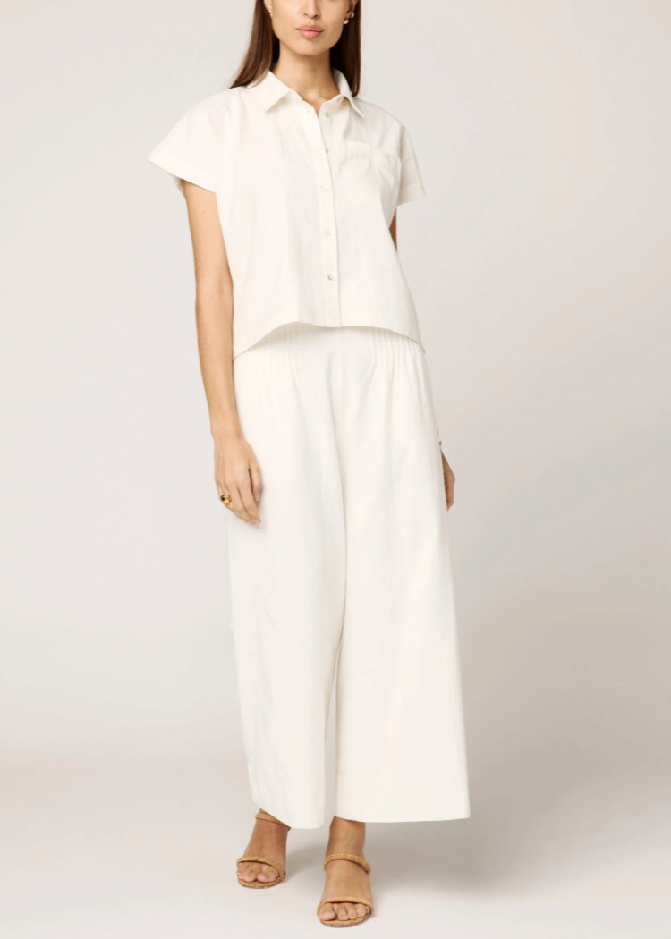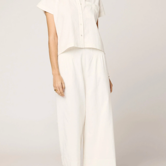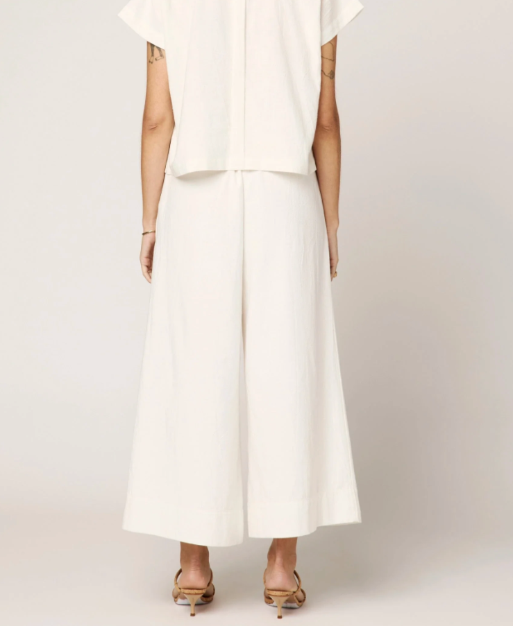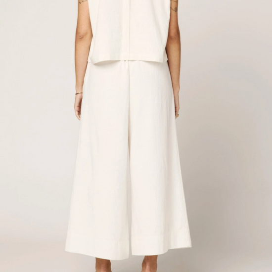 The Manui Pant brings playful comfort to your wardrobe with its breezy wide-leg silhouette and charming knife pleats at the front. Crafted from a soft, GOTS-certified cotton-linen blend, these trousers feature an elastic back waistband and side zipper for a perfect, easy fit. With angled pockets and a relaxed vibe, they’re ready to pair with the Ambesia Tank or Kalora Blouse for a fun, coordinated look. Ethically handmade in India, the Manui Pant is your new go-to for effortless style and comfort.