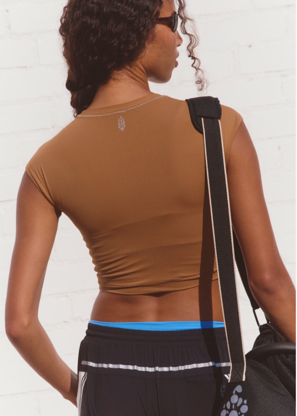 The Never Better Ultra Light Tee combines performance and style in a fitted, cropped silhouette designed for active wear. Crafted from ultra-soft, lightweight fabric that wicks sweat and breathes effortlessly, it keeps you comfortable during intense workouts. The scoop neckline and capped sleeves provide a sleek, streamlined look, making this tee an essential piece for any fitness wardrobe. Ideal for layering or wearing solo, it offers both functionality and an elevated finish.