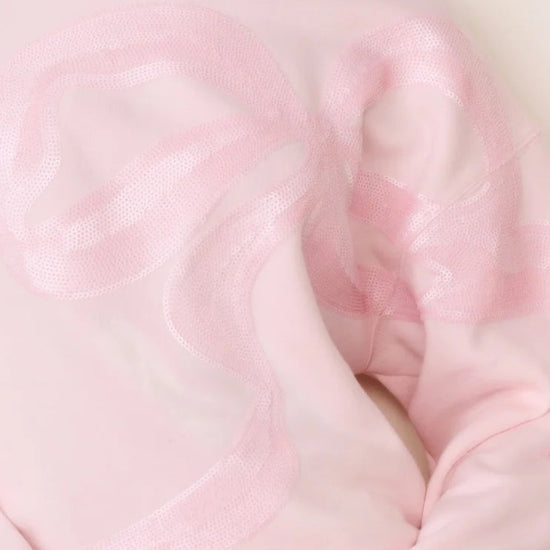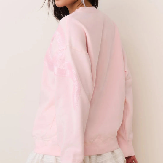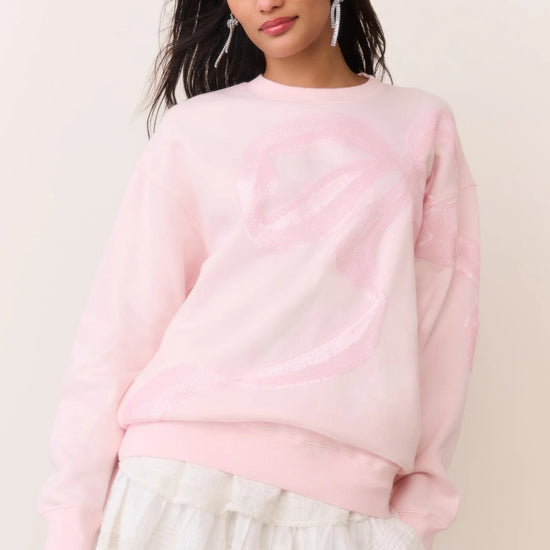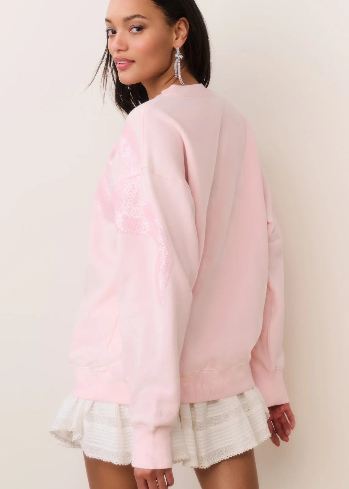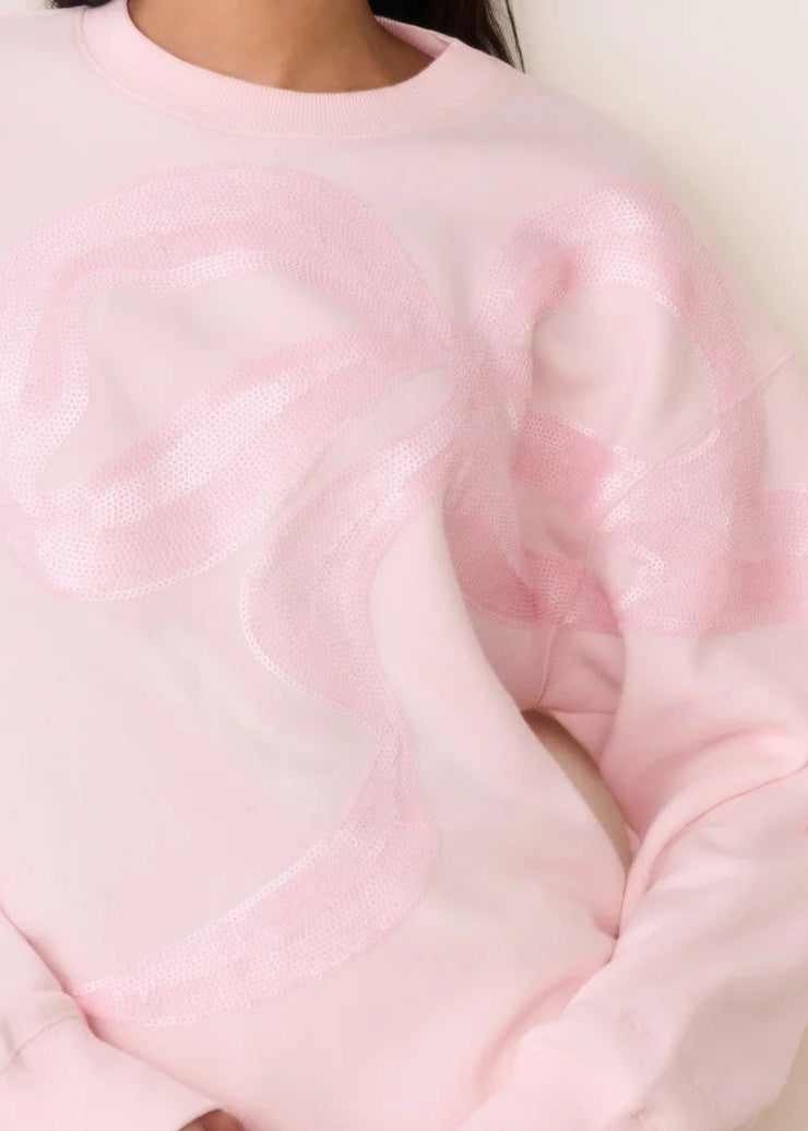 The beloved Palo Pullover makes its holiday comeback with an elevated twist—matte, tone-on-tone sequins that catch the light without overwhelming the design. This oversized sweatshirt showcases a striking large-scale bow motif in soft wistful pink, creating an instantly festive focal point. Ribbed trims at the neckline, cuffs, and hem anchor the relaxed silhouette with structure and polish. Crafted from a breathable cotton-polyester blend, it delivers the comfort of everyday wear with unexpected sparkle—the perfect piece for layering through the season.