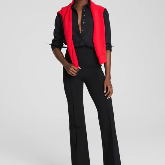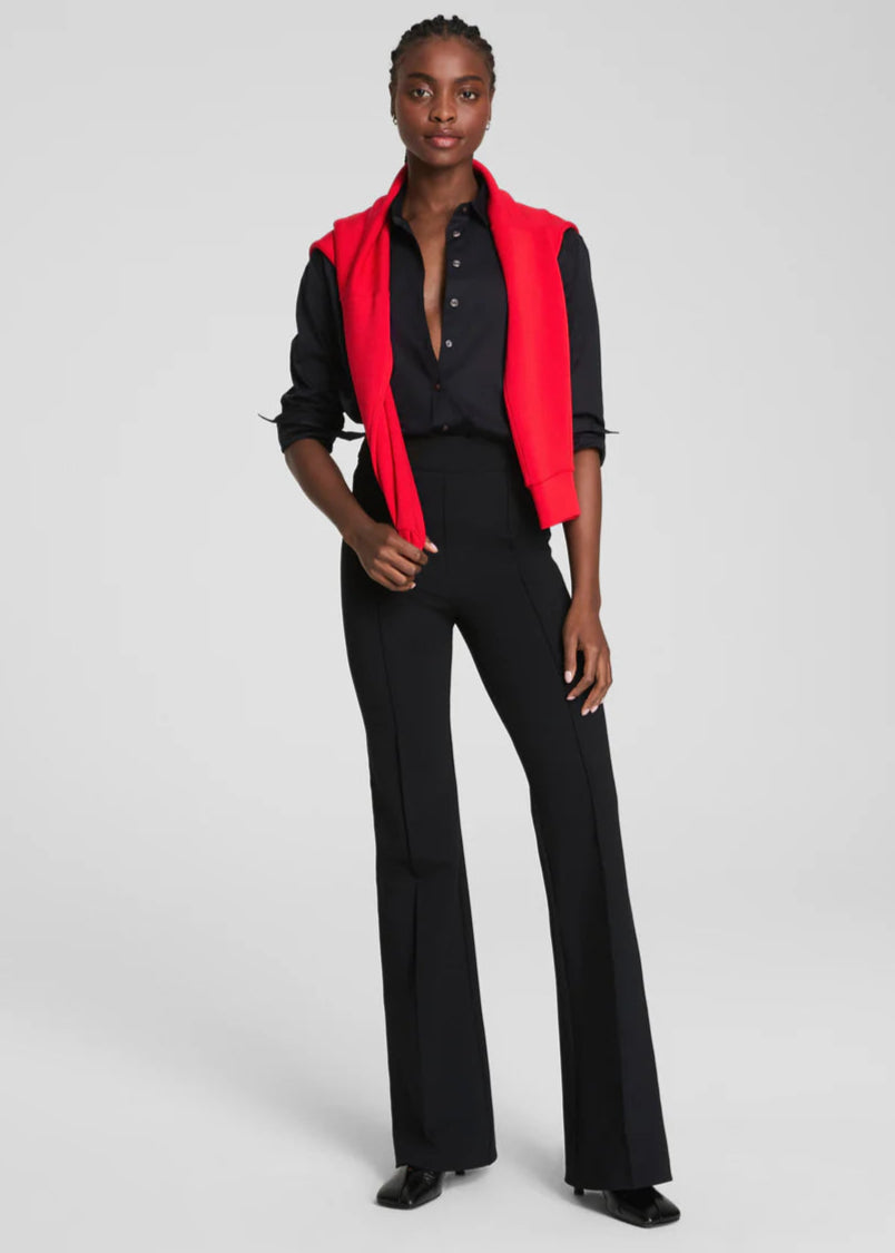 Experience flawless shaping with the Perfect Fit Ponte Flare Pant, crafted from premium ponte fabric featuring SPANX CoreSure Tech™ for targeted compression and built-in core smoothing. These curve-enhancing flares offer comfortable 4-way stretch for a seamless fit without zippers, buttons, or pockets, eliminating bulk while providing a leg-lengthening silhouette. Designed for effortless wear and expert smoothing, they deliver light compression to enhance your natural shape with ease.
