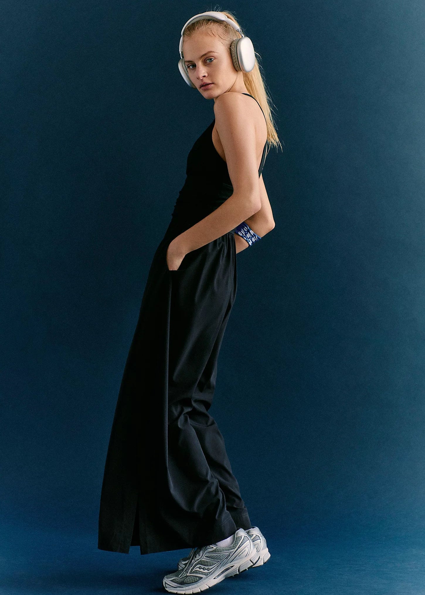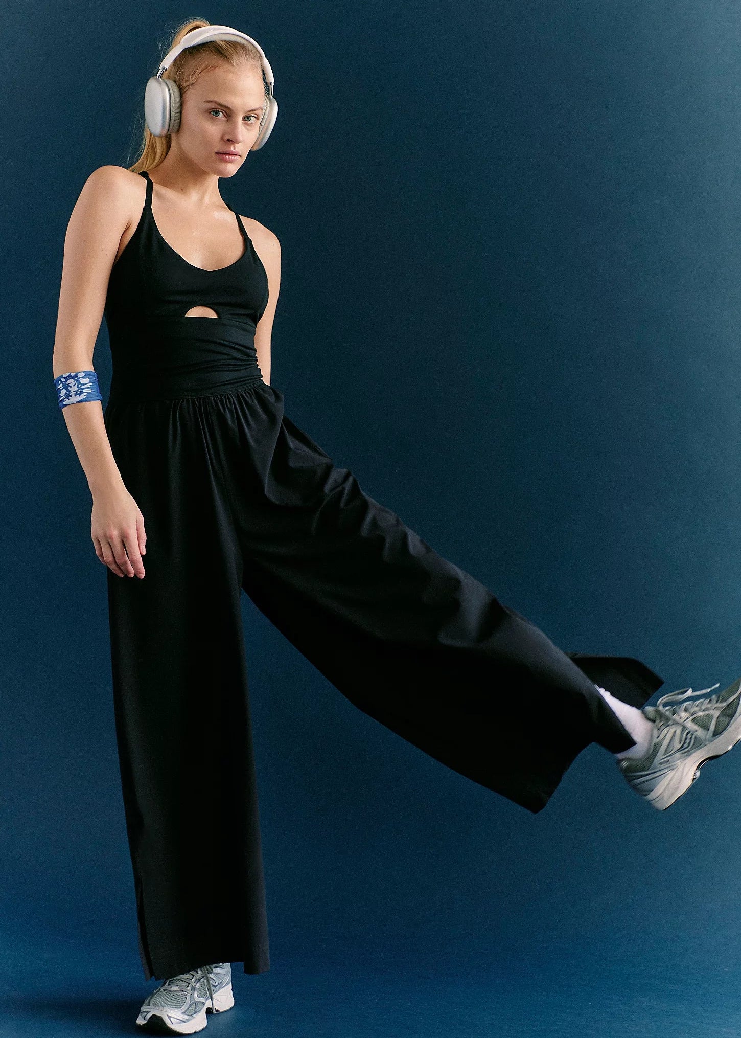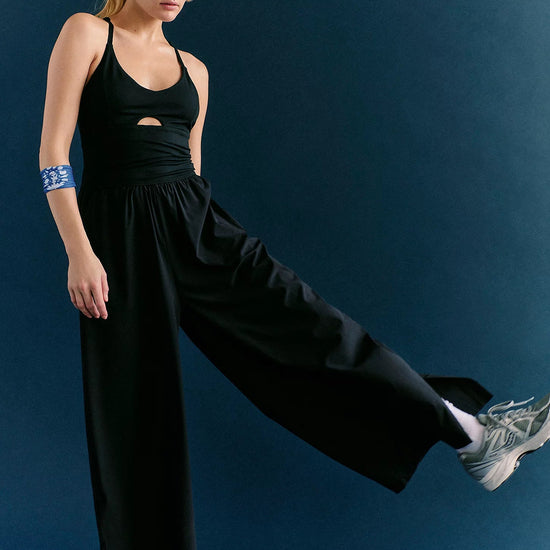 The Renewal Waves One Piece combines performance and style with a fitted bodice and flowing wide-leg silhouette designed to move with you. Crafted from performance poly fabric, this piece features a scoop neckline with racerback support, a strategic cutout detail at the bust, and an ultra-thick, high-rise waistband for secure comfort. The pull-on design and full-length wide legs with graceful hems make it an effortless choice for yoga, studio sessions, or everyday wear. One piece, endless versatility.