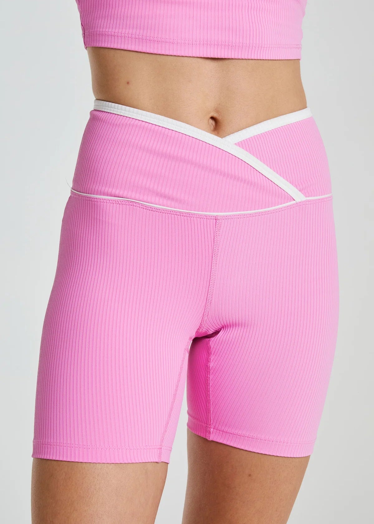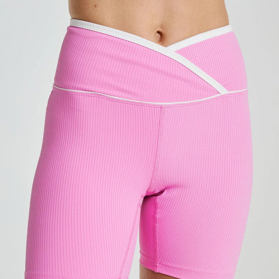 With an ultra-flattering wrap-front waistband and contrasting edge, these warm-weather approved biker shorts have a little more personality than your classic pair. Designed in our signature Active Ribbed fabric that keep you supported and dry through any workout, these shorts will quickly become a spring and summer staple.
