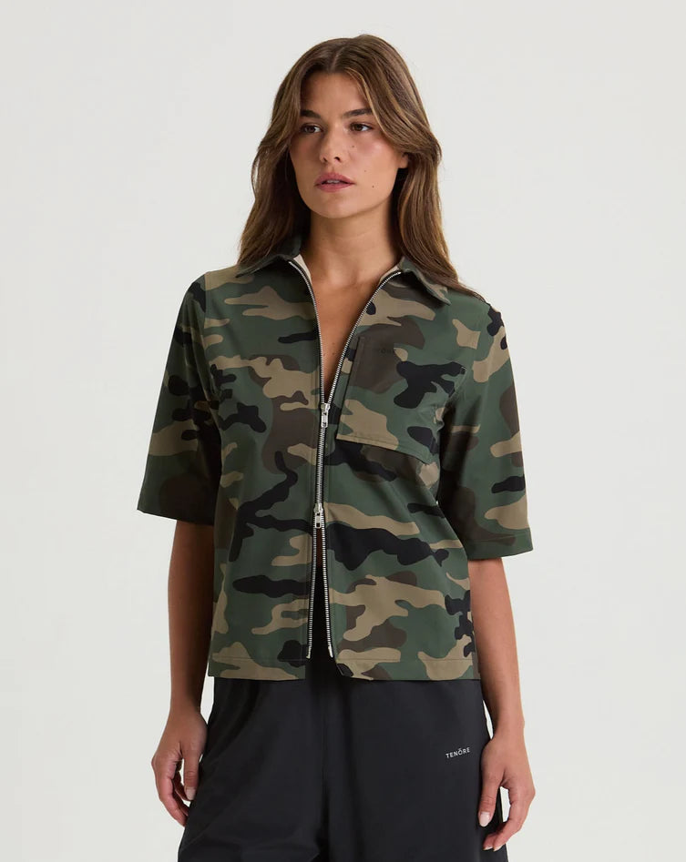 The Service Zip delivers versatile style and function in an oversized silhouette. This collared short-sleeve shirt features a two-way zip for effortless layering and temperature control, paired with a distinctive TENŌRE screen-print across the back. Engineered with quick-dry fabric and subtle stretch, it transitions seamlessly from active pursuits to casual wear. The soft hand feel ensures comfort throughout the day, whether you're pushing performance limits or unwinding off-duty.