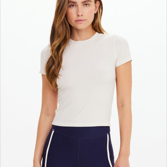 The Shelter Fitted Tee combines minimalist design with functional performance. Crafted in cream with a structured rib fabrication, this tee features a streamlined silhouette that flatters the frame. The moisture-wicking properties keep you comfortable throughout the day, while a subtle embroidered arrow logo at the back neck adds understated sophistication. Clean lines and expert tailoring define this versatile essential. Studio imagery reflects the garment's true colorway.