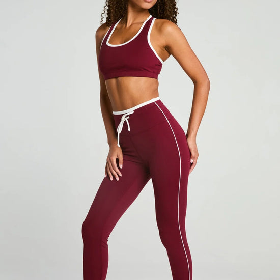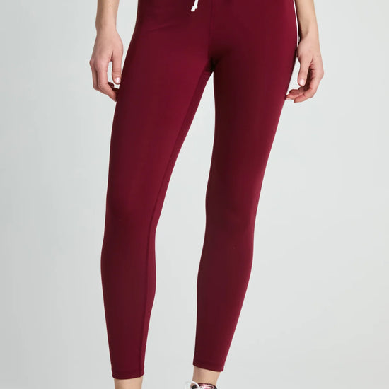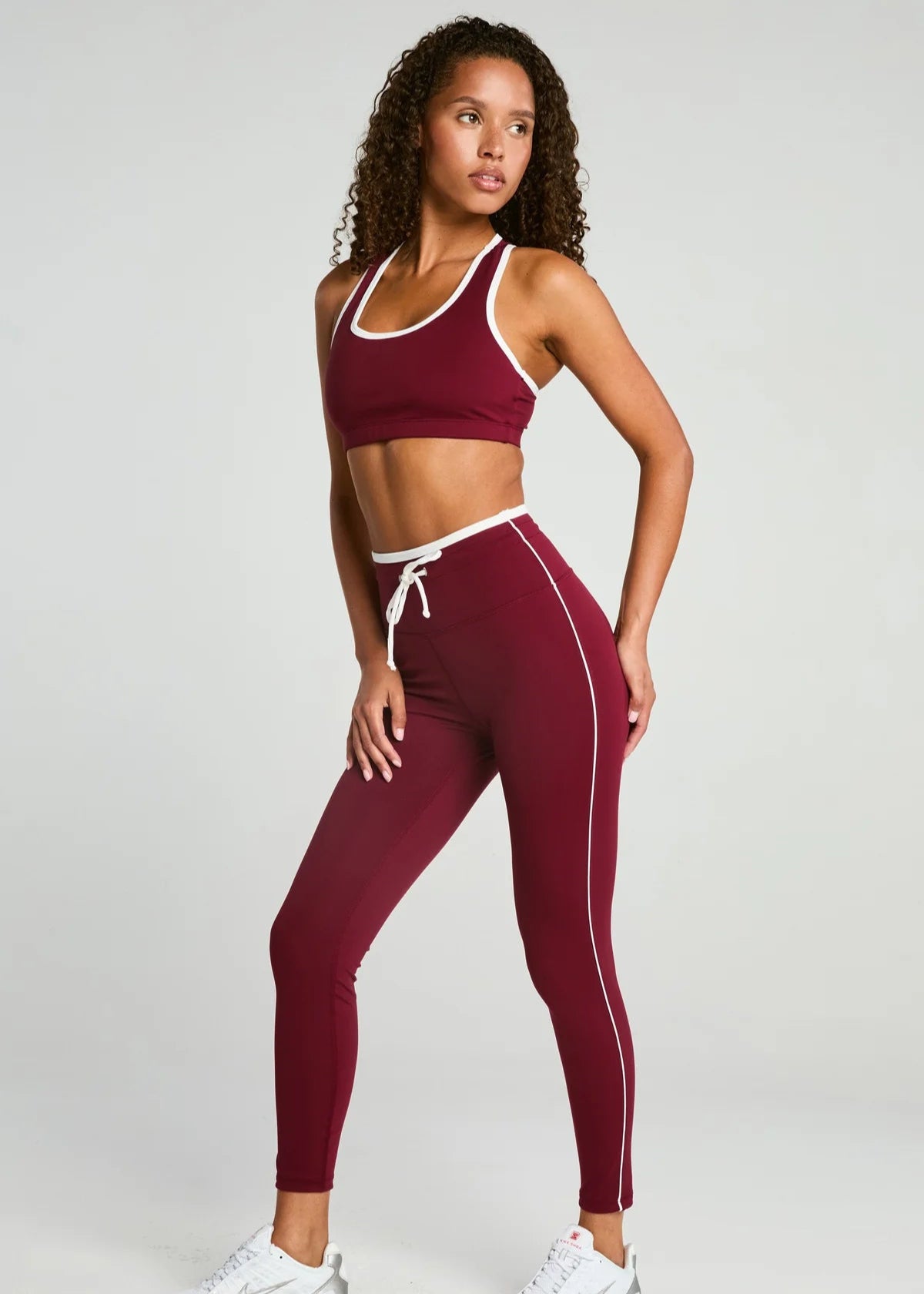 Elevate your workout wardrobe with the Sport Sprint Legging, designed for both style and performance. These high-waisted leggings provide a sleek, smoothing fit with a wide waistband and adjustable drawstring for personalized support. Made from a breathable blend of recycled polyester and spandex, they offer full-length coverage while allowing freedom of movement. Functional and flattering, the contrasting details add a retro sporty edge perfect for any active lifestyle. With a front rise of 9 3/4" and a 25 1/2" inseam, these leggings combine comfort and durability for everyday wear.