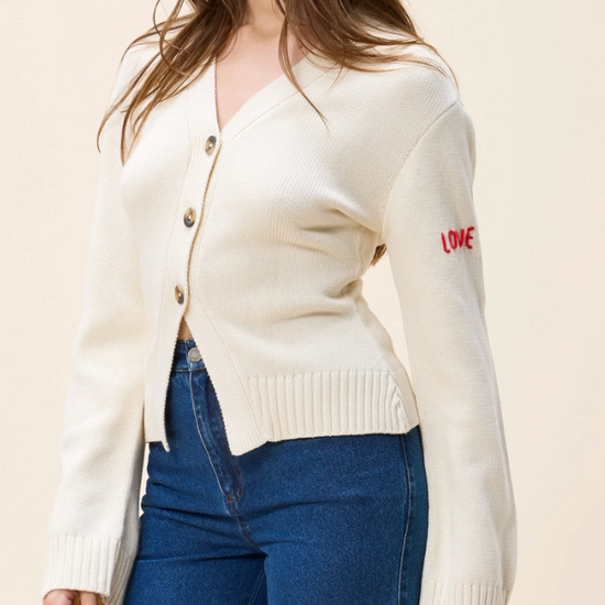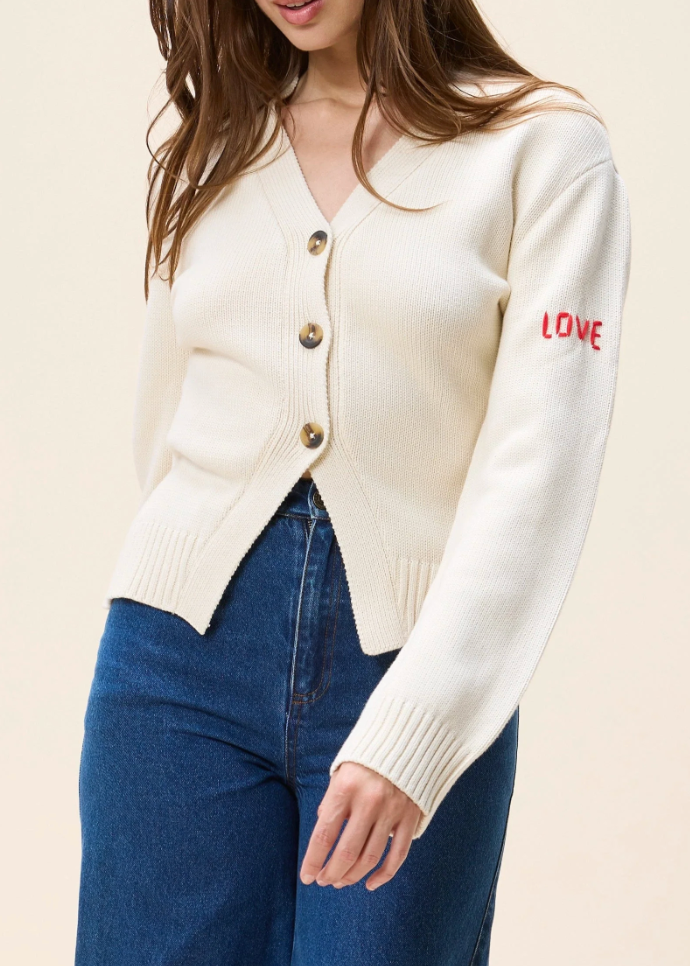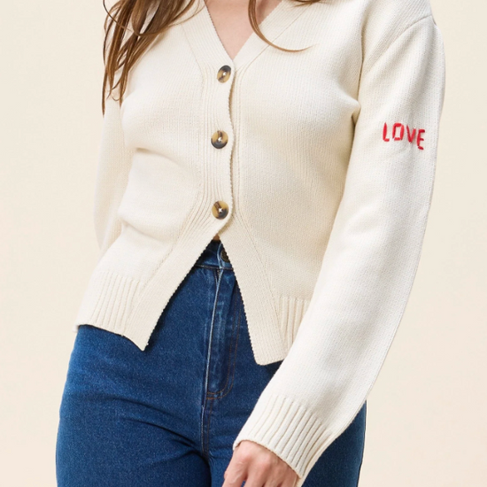 The Tamsin Sweater combines thoughtful design with sustainable craftsmanship. Knit from 100% organic cotton, this piece offers breathable comfort without compromise. The center-front button closure provides versatile styling options—wear it fully buttoned for polished warmth or open as a layering piece. A delicate embroidered detail along the sleeve adds understated character. Whether dressed up or down, this sweater delivers the kind of quiet elegance that transcends seasonal trends, making it a reliable foundation for any wardrobe.