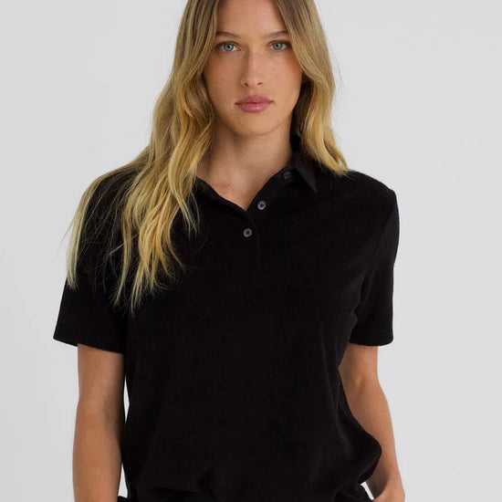 Crafted from premium soft towel terry fabric, this polo transcends traditional beachwear boundaries with its distinctive textured surface. The elevated material composition delivers both comfort and visual sophistication, making it equally at home on the boardwalk or the street. The terry construction provides breathability and durability while establishing a refined aesthetic that sets it apart from standard polos. Perfect for those seeking versatile pieces that bridge casual and contemporary style.