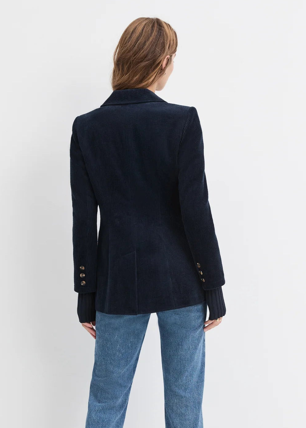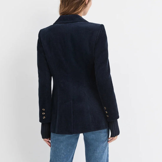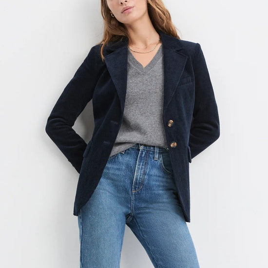 The Cord City Blazer transforms everyday commutes into moments of understated elegance. Tailored in slim-fit wide wale corduroy, this piece features faux horn buttons and functional front flap pockets that balance polish with practicality. Delicate stitching elevates the design, while cotton-cashmere ribbed cuffs deliver a luxurious touch against the skin—the signature detail that reminds you that style matters, even on the walk to work.