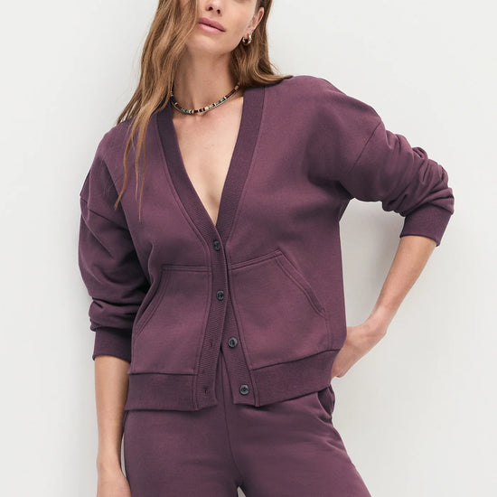 The Cutesy Cropped Cardigan offers a perfect balance of comfort and style. Crafted from 100% fleece, its cozy softness and cropped fit make it ideal for layering. The long sleeves and low neckline add versatility, allowing you to create polished looks effortlessly. Pair it with The Boxer Wide Leg in Burgundy Dahlia for a coordinated, sophisticated ensemble.