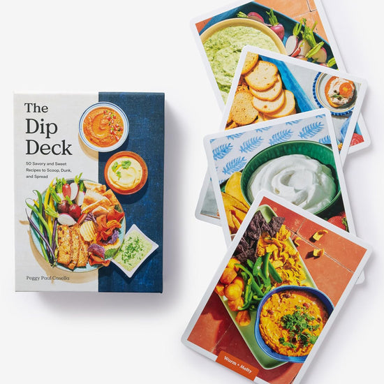 Dips are the versatile food group ideal for any time of day—whether you’re hosting friends, looking for a quick snack, or whipping up a tasty foundation for an easy meal. In this deck of 54 cards, you’ll find suggested scoopers (from ideal seasonal veggies and herbed crackers to homemade pie crust chips, and more) alongside classic recipes like Caramelized Onion Dip and Queso as well as inventive spins such as Creamy Kimchi Dip and Roasted Carrot Dip with Harissa (and don’t forget sweet treats like S’mores Dip and Chocolate Fondue). You'll also find recipes for complete meals like Hoagie Dip, Skillet Pizza Dip, Cheeseburger Dip, and so much more.