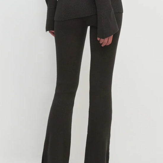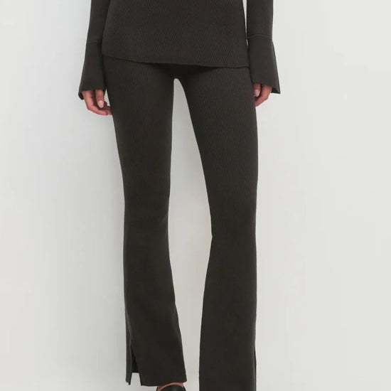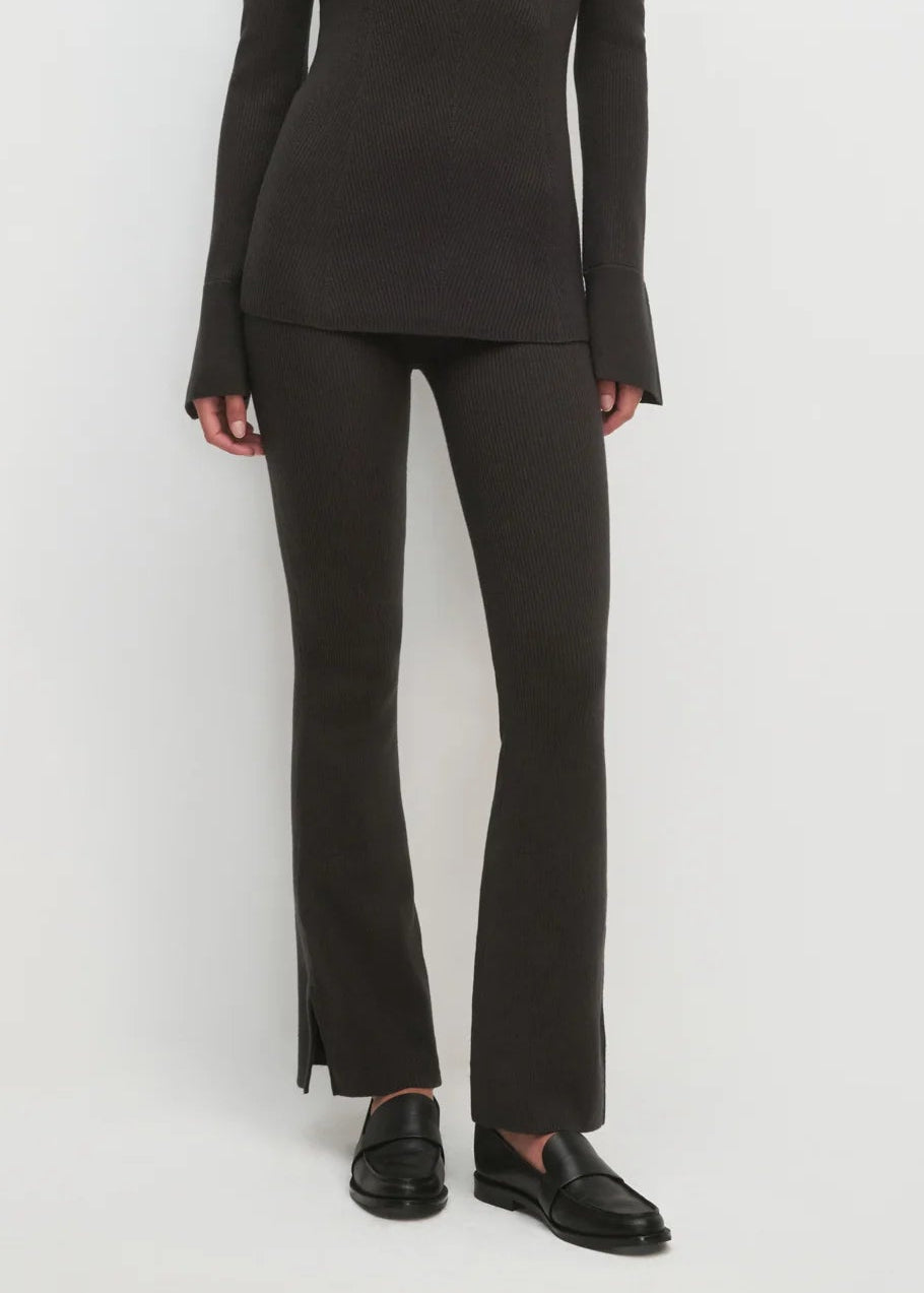 The Runway Pant brings high-fashion sensibility to everyday wear with its refined viscose-blend construction and distinctive rib-knit texture. The slim silhouette tapers to an 11.5" inseam before opening into a graceful 30" flared hem—a proportional balance that flatters and elongates. Soft, breathable fabric ensures all-day comfort without compromising on style. A versatile essential that transitions seamlessly from desk to dinner.