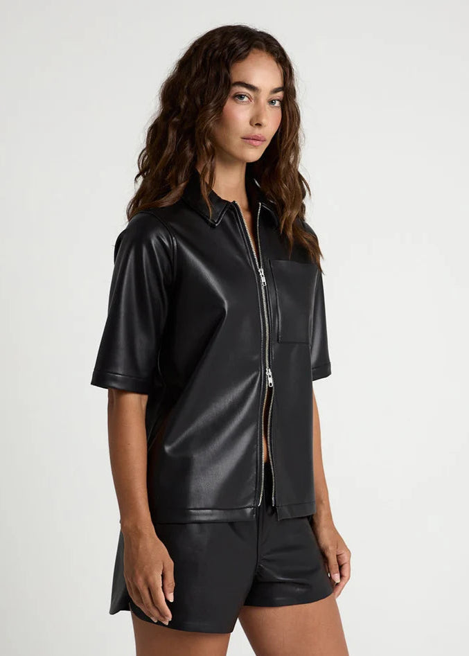 Crafted from premium vegan leather, this service zip delivers sophisticated style without compromise. The streamlined silhouette works equally well layered over basics for weekend errands or paired with tailored pieces for evening occasions. Thoughtfully engineered with a relaxed fit that prioritizes movement, it's the kind of essential piece that anchors any wardrobe. Durable, cruelty-free, and designed to age beautifully, this jacket proves that versatility and ethical fashion aren't mutually exclusive.