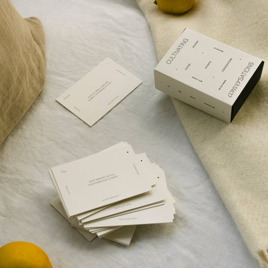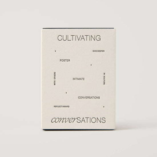 Cultivating Conversations Card Deck is a purposefully crafted tool for deepening dialogue and self-awareness. This 70-card collection organizes questions across seven thematic pillars—Past, Present, Future, Soul, Self, Inspiration, and Emotions—each presenting layered prompts that progress from surface-level exploration to profound inquiry. Ideal for solo reflection, partner conversations, or group settings, the deck elevates everyday moments into spaces for genuine connection and understanding. Constructed from premium recycled hemp stock, each 2.75" x 4" card combines durability with environmental responsibility. Whether you're pursuing personal growth or nurturing relationships, this deck serves as a structured gateway to conversations of substance and meaning.