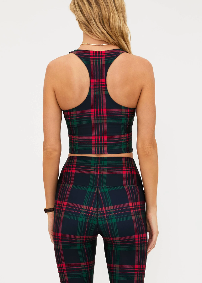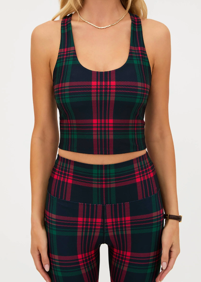 The Yara Top combines functional design with eye-catching style. Featuring a built-in shelf bra with removable soft cups, it delivers customizable support for any activity. The scoop neckline and racerback construction enhance mobility while maintaining a secure fit. Crafted from performance fabric that sculpts while remaining breathable, this top handles both workouts and everyday wear. The bold red and green plaid print adds personality to your athletic rotation.